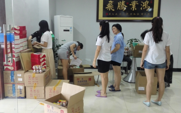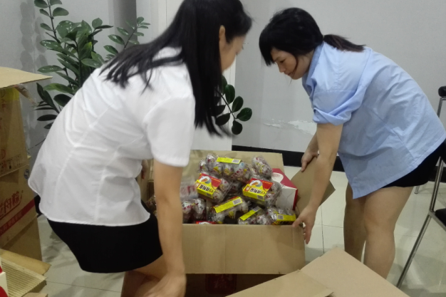 負責領(lǐng)取的前臺小周清點、簽名忙的不亦樂乎,這不,財務部的美女們熱心幫忙分發(fā)啦!