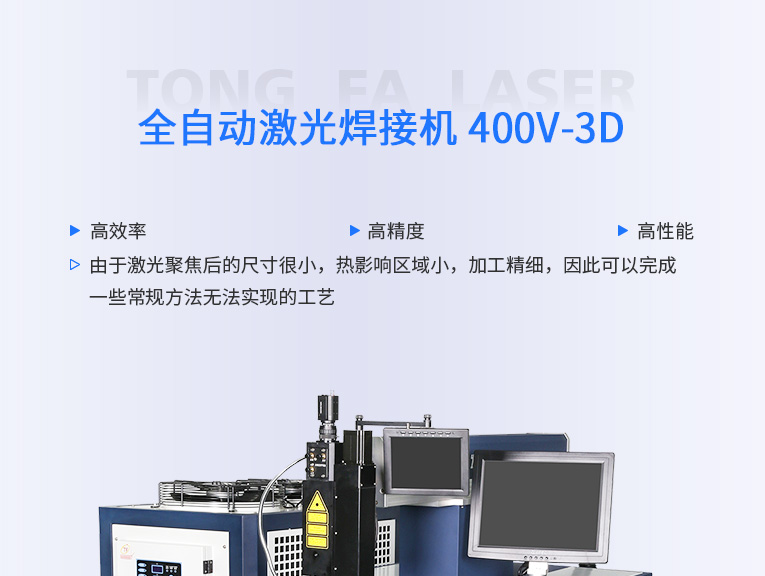 通發激光TFL-400V-3D全自動激光焊機廣泛適用1.0mm以內料厚的電熱水壺激光焊接,發熱盤激光焊接、水壺壺嘴激光焊接、不銹鋼水杯等3維曲面激光焊接加工。配置專業工控電腦及多軸數控軟件,X/Y/Z/U四軸聯動,可實現大多數五金產品激光焊接。