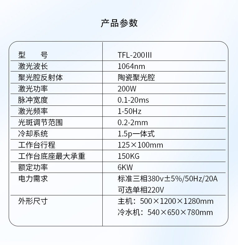主機(jī):500×1200×1280mm 冷水機(jī):540×650×780mm |