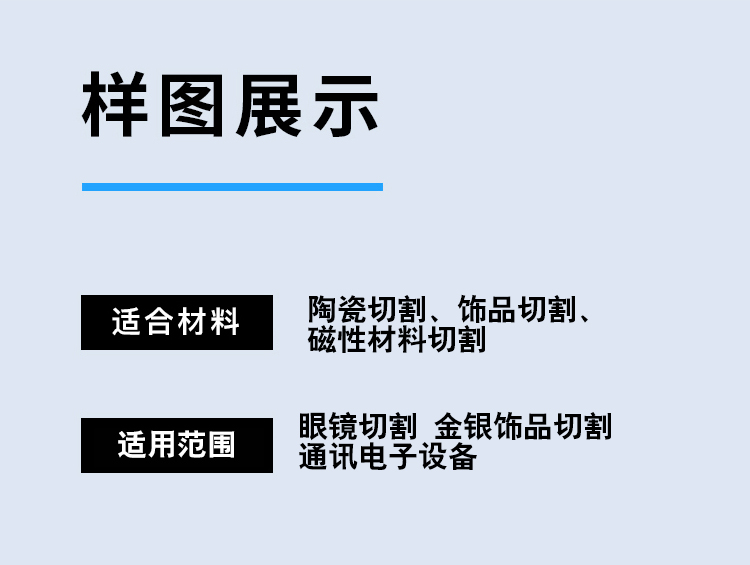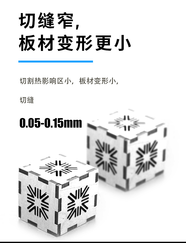 精密小幅面激光切割機TFL-LCP6060精度高,重復(fù)性好,不損傷材料表面,適用于眼鏡切割、陶瓷切割、飾品切割、磁性材料切割;切縫成型不發(fā)黑,光滑平整,板材成型切口無需人工再處理。