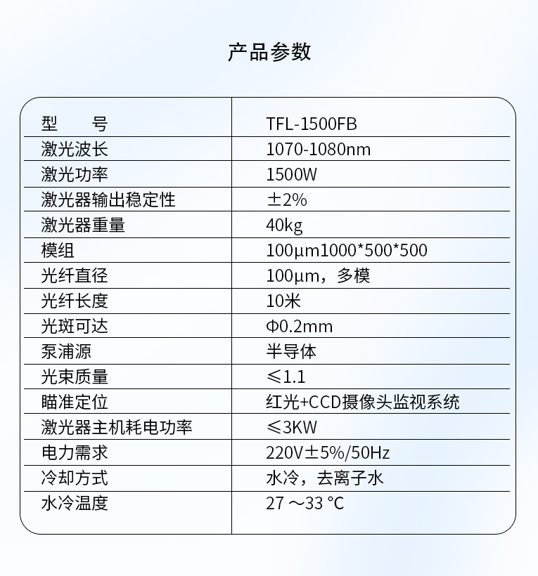 通發激光光纖激光器配置